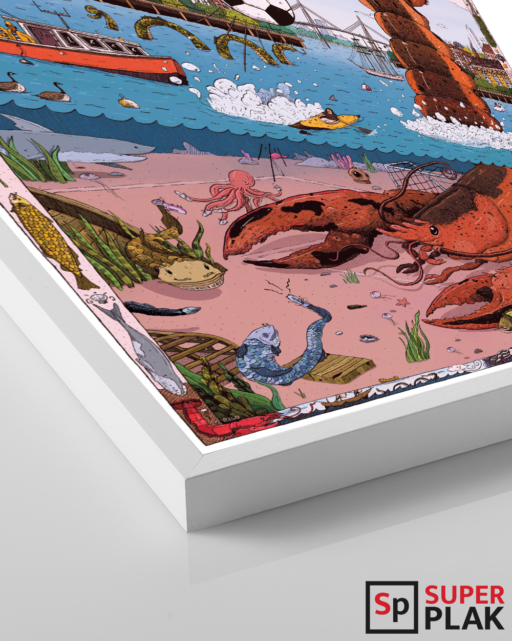 Elegant black frame providing a bold contrast to the vivid poster colors.